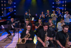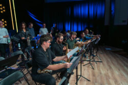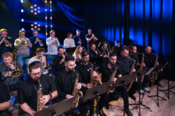 Koncert jubileuszowy 80 lat PSM Płock, 17.10.2025. Big Band złożony z uczniów i absolwentów PSM Płock pod kierunkiem Krzysztofa Kralki.